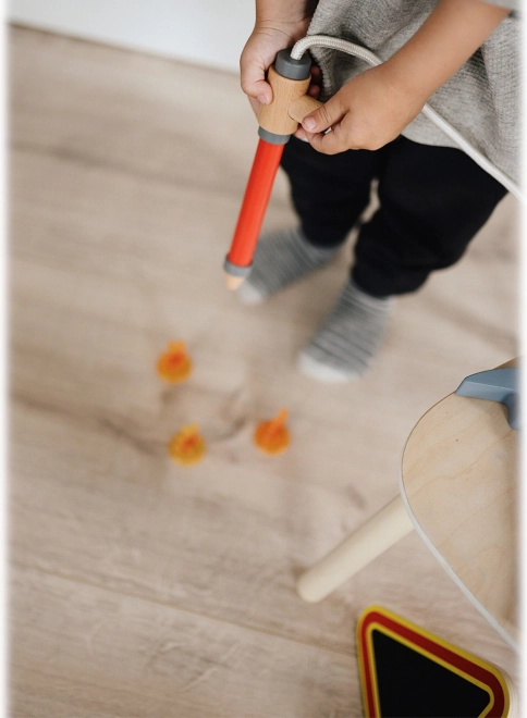 Setul include un „furtun” din lemn și o pompă cu care copiii „sting” cu ușurință orice flacără. Stimulează imaginația și dezvoltarea motricității fine.