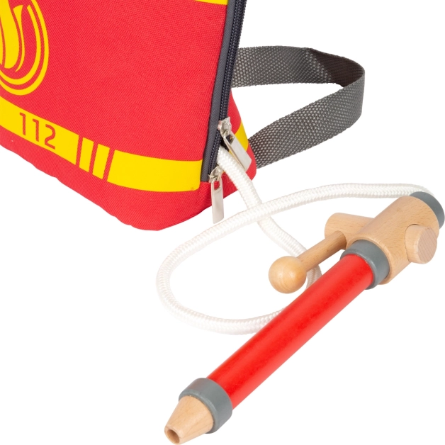 Pornește la intervenție cu echipare completă! Acest rucsac de pompier pentru copii small foot, în culori de urgență, oferă bretele ajustabile, deschidere largă cu fermoar dublu și mult spațiu de depozitare pentru accesorii din lemn și plastic. Datorită cataramelor cu clips se pot fixa ușor accesorii suplimentare, iar super dotarea este pompa de incendiu de jucărie pentru un joc realist de pompieri.