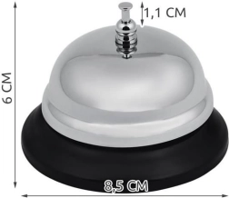 Specificatiile acestui clopoțel includ oțel inoxidabil, culoarea argintie și dimensiuni de 8,5 cm în lățime și 6 cm în înălțime. Greutatea sa este de 95 g, făcându-l un produs ușor, dar robust.