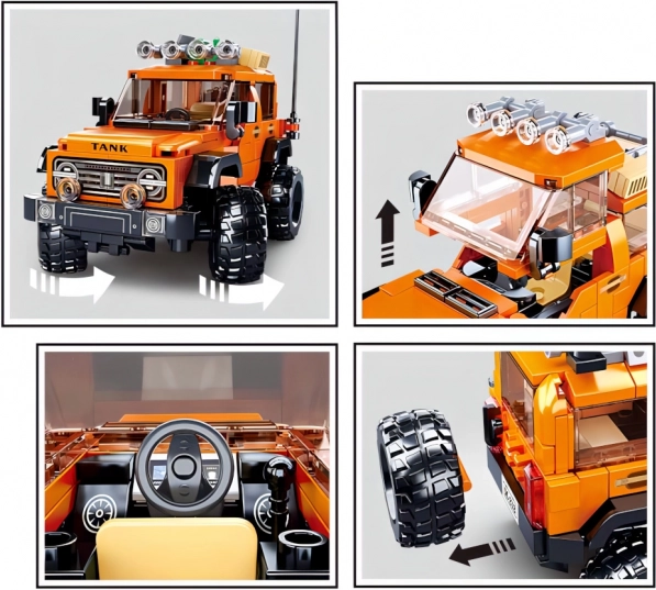 Descoperă plăcerea construcției cu un vehicul off-road inspirat de SUV-urile americane. Modelul în combinație portocaliu-negru cu roți masive, suport de plafon și grilă frontală detaliată este ideal atât pentru scenarii dinamice, cât și pentru expus pe raft. Datorită plasticului ABS rezistent, setul este durabil și sigur.