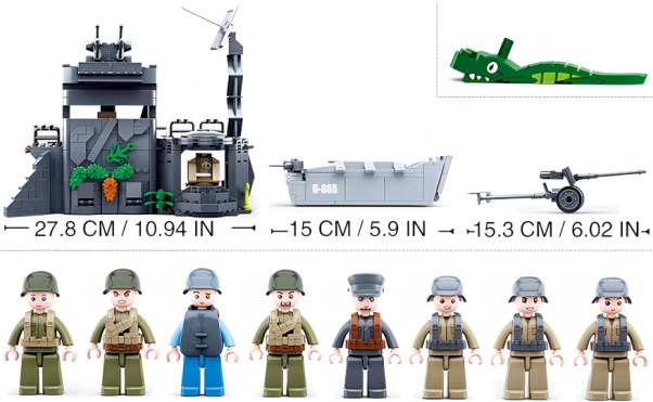 Setul include opt minifigurine în echipament militar, o barcă, o motocicletă și multe accesorii – totul pregătit pentru misiuni curajoase pe uscat și pe apă.