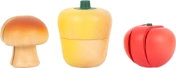 Include un cuțit din lemn, un tocător și legume. Ambalajul reutilizabil servește la depozitarea jucăriei și îi învață pe copii gândirea ecologică.