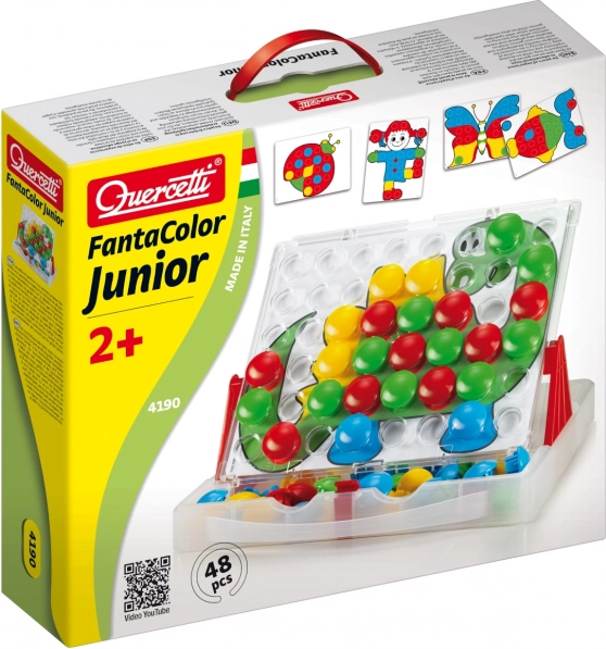 Descoperiți mozaicul creativ QUERCETTI FANTACOLOR JUNIOR, care dezvoltă imaginația copiilor și motricitatea fină. Datorită pionilor mari, copiii îi pot manipula ușor, valiza practică păstrează totul la un loc, iar cele 8 șabloane față-verso inspiră la creație. Jucăria sprijină recunoașterea culorilor, coordonarea mână–ochi, concentrarea și răbdarea.