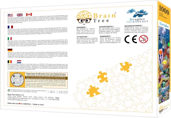 Puzzle Marea Pestră de la Brain Tree este pentru toți cei care vor să se bucure de o aventură sub apă. Cu 1000 de piese de diferite forme, veți savura asamblarea cu un aer de originalitate. Finisajul mat garantează că toate detaliile imaginii sunt vizibile excelent chiar și cu o iluminare variată. Fiecare piesă este unică nu doar prin formă, ci și rezistentă la uzură.