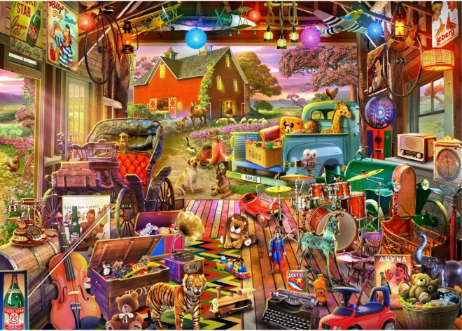 Puzzle-ul premium Brain Tree oferă o scenă vie și detaliată plină de jucării, instrumente muzicale și atmosfera rustică a unui hambar. Suprafața mată elimină reflexiile și pune în valoare chiar și cele mai fine detalii multirelief, astfel încât să vă bucurați de motiv în orice iluminare.