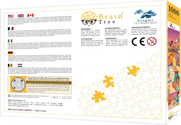 Vei aprecia accesoriile bogate din pachet: poster 52 × 30 cm pentru orientare mai ușoară, tăvițe pliante din carton pentru sortare, suport practic pentru capacul cutiei și, la seturile de 1000 de piese, punguță mare resigilabilă care protejează piesele împotriva deteriorării și pierderii. Imaginea finală are dimensiunea de 70 × 50 cm.