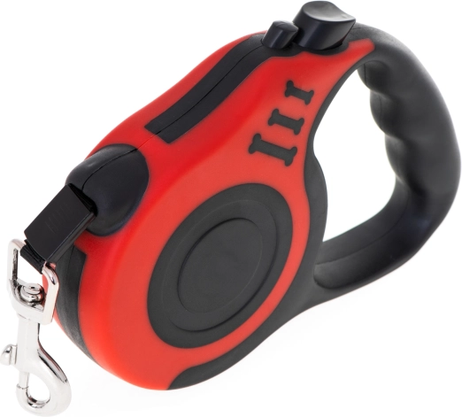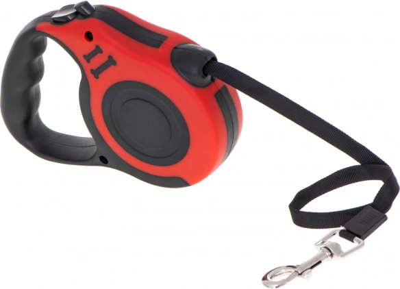 Această sfoară automată pentru câini și pisici, disponibilă în culoarea roșie, este un accesoriu esențial pentru plimbările cu animalele de companie.