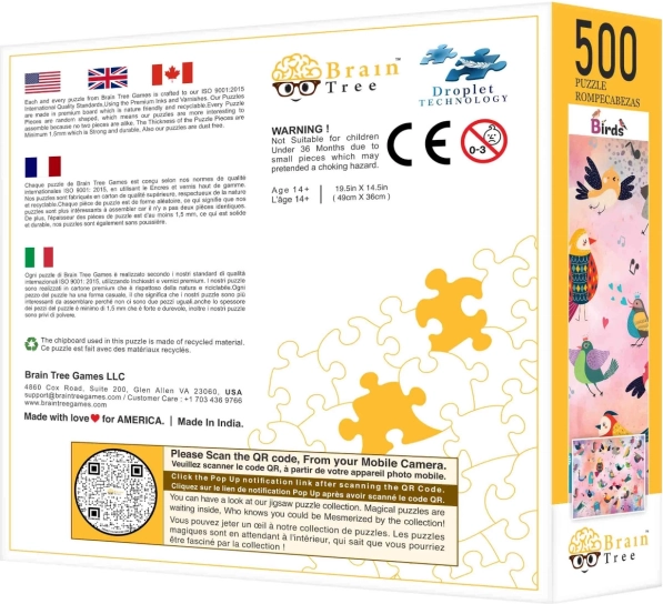 Jocul de puzzle Puzzle Brain Tree Păsări de Basm va încânta toți entuziaștii de puzzle prin calitatea și originalitatea sa. Piesele sunt plăcute la atingere și sunt foarte rezistente la uzură, asigurând astfel o durabilitate îndelungată. Spre deosebire de puzzle-urile tradiționale, unde piesele sunt tăiate într-un model de grilă, aici veți găsi piese de forme diverse, care aduc o nouă dimensiune aventuroasă jocului.