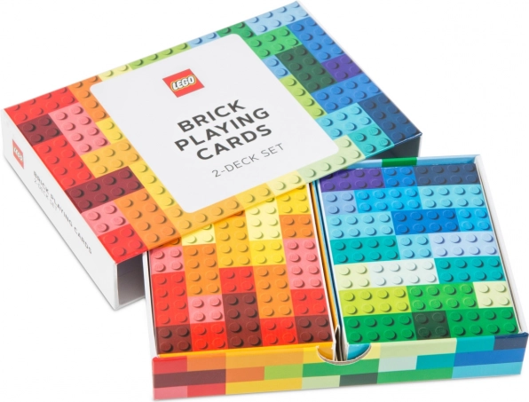 Set elegant de cărți de joc licențiat LEGO, cu 2 pachete separate (în total 108 cărți), potrivit pentru canastă, poker și alte jocuri de cărți. Se remarcă prin culori vii, motive cu cărămizi și minifigurine LEGO și o calitate excelentă a execuției din materiale reciclate și sustenabile, imprimate cu cerneluri sigure.