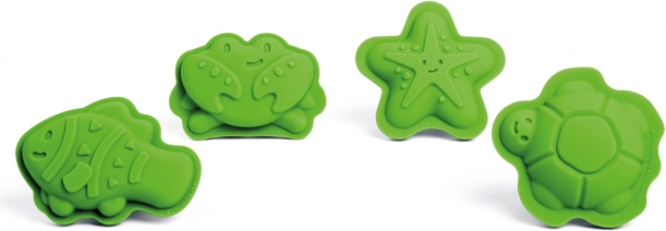 Descoperă setul jucăuș de patru forme din 100% silicon în nuanța verde Meadow de la BIGJIGS TOYS. Copiii pot crea minunate creații din nisip cu motive din lumea marină – stea de mare, crab, pește și țestoasă. Formele sunt rezistente la temperaturi și pete, plăcut moi și sigure pentru mâinile mici. După joacă, le depozitezi ușor în săculețul de bumbac inclus.