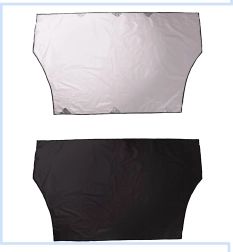 Această pelerină magnetică practică este o protecție ideală pentru parbrizul sau luneta vehiculului. Vara reduce eficient supraîncălzirea interiorului și blochează radiațiile UV, iar iarna protejează geamul de îngheț și zăpadă. Este fabricată din poliester rezistent, opac cu strat termoizolant argintiu pe o parte.