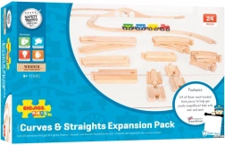 Setul de șine de lemn Bigjigs Rail oferă copiilor oportunitatea de a se juca la nesfârșit și de a-și dezvolta creativitatea. Cu 24 de piese, pot crea cu ușurință diverse configurații de trasee și povești interactive. Datorită materialelor naturale de calitate și compatibilității cu alte mărci, acest set este ideal ca supliment sau extindere pentru traseul de trenuleț existent.