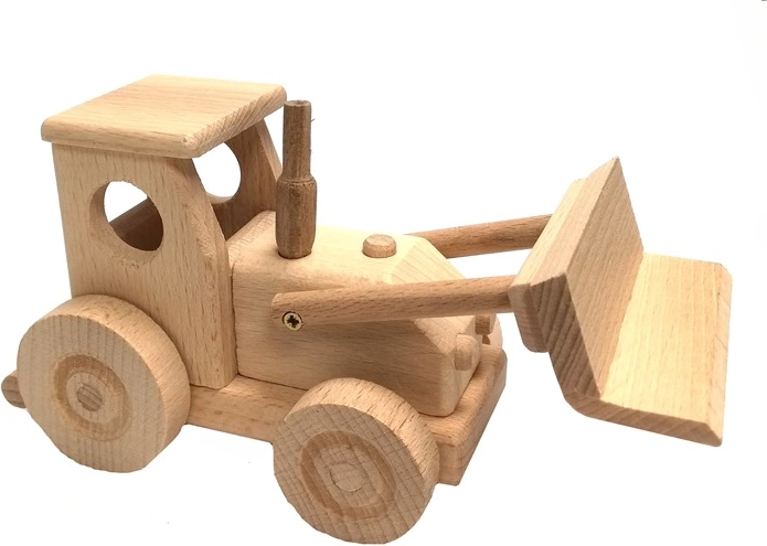 Acest tractor de lemn este companionul ideal pentru micii constructori. Este fabricat cu atenție din lemn de fag de înaltă clasă și nu conține chimicale sau vopsele în finisaj, garantând siguranța copiilor. Datorită marginilor rotunjite și elementelor sale mobile, este perfect pentru joacă acasă sau în nisipar.