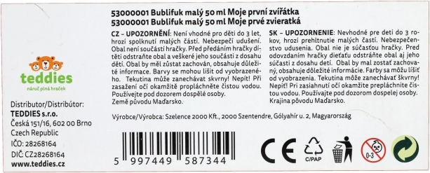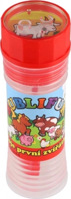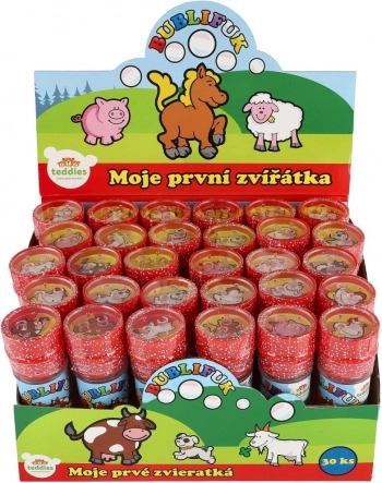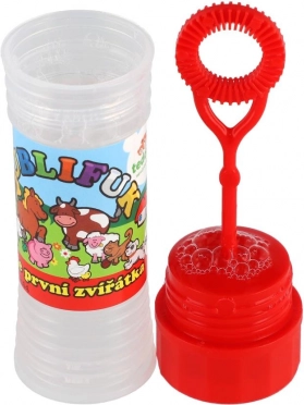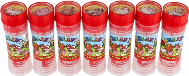 Baloanele de săpun cu motivul Animăluțele mele prime vor bucura orice copil. Conțin 50 ml de lichid pentru bule, în capac este integrat un joc, iar suflătorul este parte a capacului. Ideal pentru petreceri, joacă în aer liber și mici recompense. Potrivit de la 6 ani.
