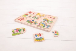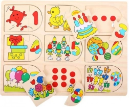 Cei mici și curioși vor iubi cu siguranță acest puzzle mic, interesant și isteț. Nu doar că se vor distra potrivind piesele în locurile corecte, dar pot introduce mai întâi doar imaginile și apoi să asocieze numerele potrivite. Fiecare piesă a puzzle-ului din lemn este dimensionată pentru a ușura ridicarea și prinderea cu mânuța copilului. Puzzle-urile sunt imprimate cu imagini sau culori care sprijină procesul de învățare și adaugă valoare educațională. O modalitate grozavă de a dezvolta dexteritatea, recunoașterea formelor, concentrarea și număratul încă de la vârste fragede. Principalele caracteristici: realizat din materiale de înaltă calitate, provenite din surse responsabile; respectă normele europene actuale de siguranță.