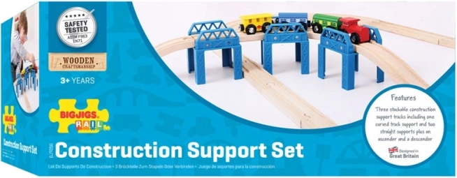 Bucurați-vă de distracție cu această construcție din lemn pentru poduri de la renumita marcă Bigjigs Rail. Acest produs permite tinerilor constructori să viseze și să creeze structuri complexe de poduri pentru căile lor ferate. Setul include trei piese înălțate și șine pentru urcare și coborâre, oferind opțiuni interesante și diverse de construcție.