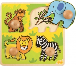 Când copiii așază toate piesele la locul potrivit, ia naștere o imagine vie a safariului. Datorită mânerelor mari, piesele se prind ușor chiar și de cele mai mici mânuțe, iar asamblarea îi încurajează să denumească animalele, să-și îmbogățească vocabularul și să exerseze coordonarea mână–ochi.