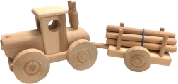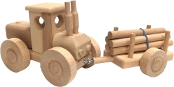 Acest tractor natural din lemn cu remorcă pentru bușteni îi va încânta pe micii șoferi și pe iubitorii jucăriilor clasice. Modelul realizat cu atenție din lemn de fag oferă rulare lină, rezistență și un design atemporal, fără lacuri și tratamente chimice.
