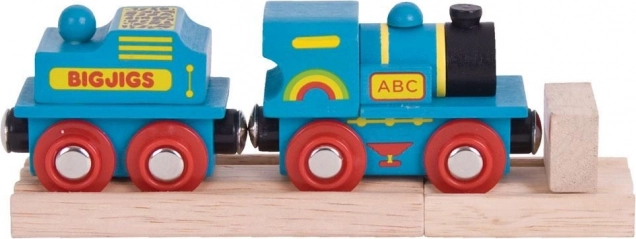 Locomotiva albastră cu tender și 2 șine de la Bigjigs Rail