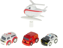 - Pistă, mașină de poliție, mașină de pompieri, ambulanță