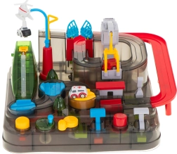 Descoperă aventuri palpitante cu pista multifuncțională plină de obstacole. Folosește butoane și comenzi pentru a se asigura că vehiculele de serviciu ajung la timp la destinație. Lăsați-vă captivați de efectele uimitoare ale diodelor luminoase, care adaugă o atmosferă vibrantă în camera de joacă.