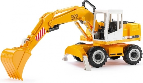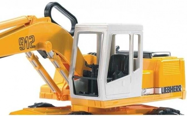 Excavator Bruder Liebherr este un model fidel al unei utilaje de construcții, cu un excavator funcțional, stabilizator și bază rotativă, ceea ce îl face un accesoriu perfect pentru fiecare mic constructor.