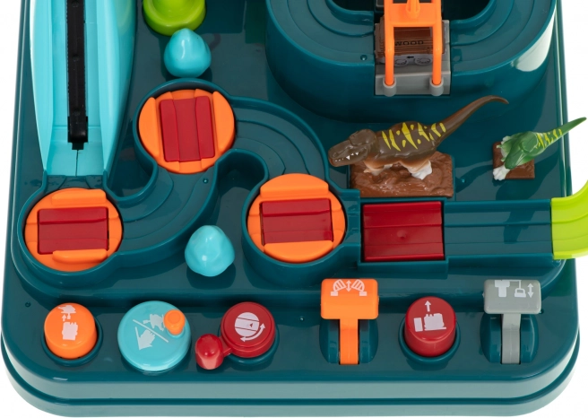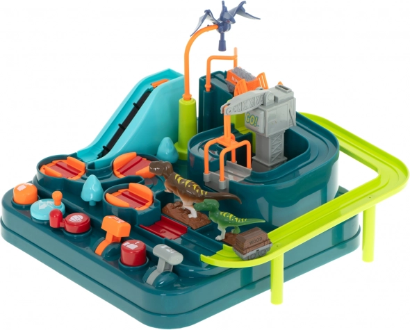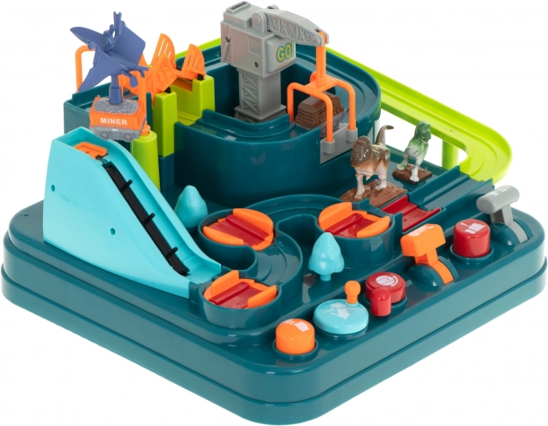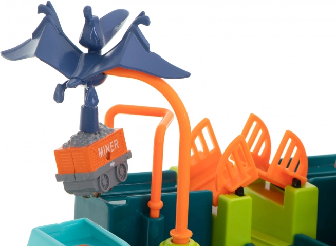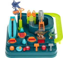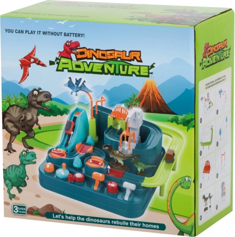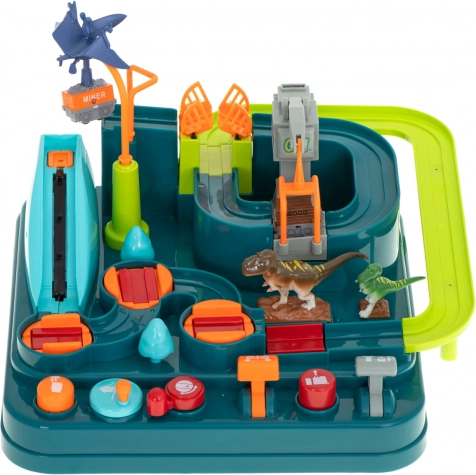 Acest joc de curse nebunești cu vagonul pe o cale ferată îngustă va fascina iubitorii de puzzle-uri și, bineînțeles, de dinozauri. Designul său se inspiră din filmele cu creaturi preistorice. Figurinele de dinozauri sunt detașabile și pot fi folosite separat sau pentru a crea noi obstacole pe traseu.