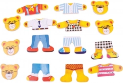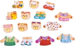 Datorită setului bogat de părți ale corpului și haine, copiii pot crea zeci de combinații, exersând denumirea articolelor vestimentare, a culorilor și a stărilor. Cutia practică din lemn păstrează toate componentele bine organizate acasă și în deplasare.