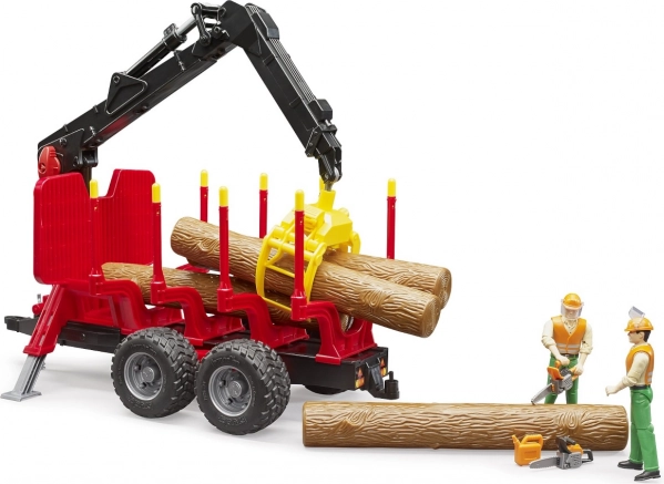 Transportorul de lemne Bruder cu braț de încărcare este un ajutor perfect pentru toți copiii care iubesc să se joace de-a lucrătorii forestieri. Acest model este echipat cu un încărcător rotativ cu gheară care se poate roti la 360°, permițând ridicarea și mutarea ușoară a buștenilor. Barierele glisante și axele flexibile asigură copierea terenului, făcând jocul mai realist și distractiv. Setul include patru bucăți de bușteni care pot fi ușor atașați la toate tractoarele Bruder.