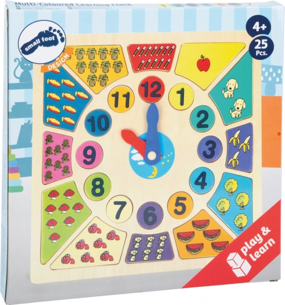 Descoperă o modalitate distractivă de a-i învăța pe copii să citească ora! Acest puzzle colorat din lemn cu piese de inserat de la small foot ajută la exersarea numerelor, timpului și cantităților, dezvoltă motricitatea fină și stimulează gândirea logică. Ideal pentru preșcolari și școlari și un plus perfect pentru orice cameră de copii.