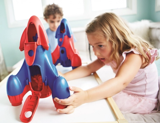 Pornește într-o aventură spațială cu jucăria GREEN TOYS – rachetă albastră din plastic reciclat provenit din sticle de lapte. Sigură pentru copii, fără PVC, BPA și ftalați, cu cockpit detașabil, uși care se deschid și doi astronauți pentru joacă creativă acasă, pe nisip și lângă apă.