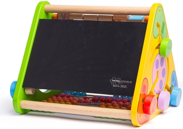 Descoperă lumea colorată a învățării și distracției cu triunghiul multifuncțional din lemn BIGJIGS BABY. Oferă până la 5 activități diferite – abac, tăbliță de desen, alfabet cu imagini în limba engleză, recunoașterea culorilor și numerelor și animăluțe. Construcția robustă, fără piese libere, este ideală pentru acasă și în călătorii, dezvoltând motricitatea fină, coordonarea și abilitățile cognitive.