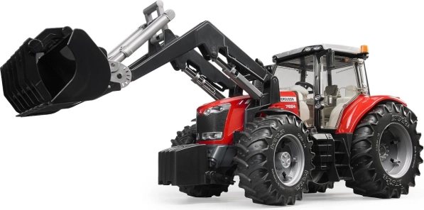 Tractorul Bruder Massey Ferguson 7624 cu încărcător frontal este o replică fidelă a unui utilaj agricol cunoscut. Acest model este fabricat din plastic ABS de înaltă calitate și policarbonat, asigurându-i longevitate și rezistență în timpul jocului. Caracteristici principale ale tractorului: