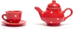 Roșul clasic cu buline albe atrage privirea din primul moment și adaugă farmec oricărei petreceri de ceai.