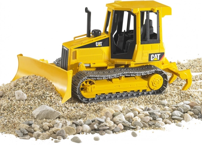 Model cu execuție detaliată caracteristică pentru mașinile marca CAT, inclusiv șenile din cauciuc și cupă frontală mare mobilă.