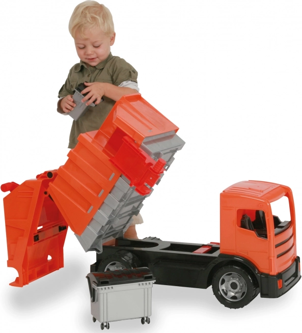Această mare mașină de gunoi portocalie, inspirată de modelul real MERCEDES ACTROS, aduce în camera copilului experiențe autentice. Două mecanisme independente de basculare și coșurile incluse permit imitarea colectării și golirii reale a deșeurilor. Realizarea durabilă din plastic de înaltă calitate respectă normele europene și rezistă chiar și la o utilizare mai solicitantă.