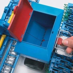 Rezervorul poate fi umplut cu nisip sau alte materiale vrac și se golește dintr-o mișcare a manetei – ideal pentru un joc realist.