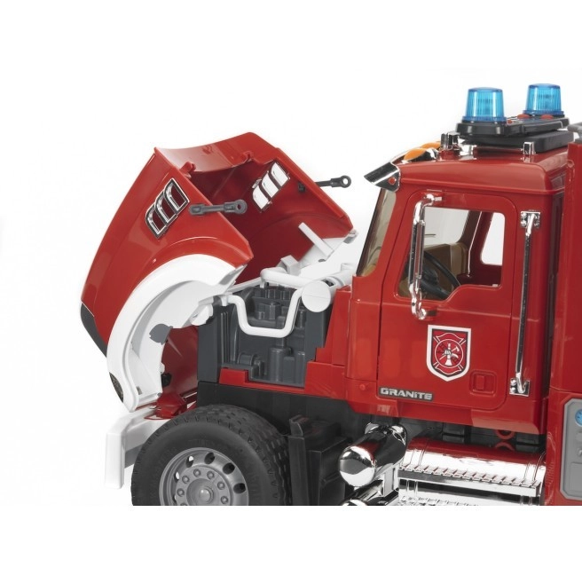 Trăiește acțiunea ca la pompieri adevărați. Acest model detaliat BRUDER MACK Granite oferă o pompă de apă complet funcțională și o scară extensibilă până la 120 cm, care se rotește la 360°. Suporturile de stabilizare asigură o bază fermă în timpul „intervenției”, iar farul cu sirenă (BR2801) completează experiența autentică de joc.