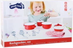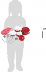Acest frumos set de vase metalice roșii este perfect pentru toți micii bucătari. Conține diferite ustensile de bucătărie, cum ar fi oală, tigaie, mănușă și alte accesorii care ajută copiii să se simtă ca adevărați bucătari. Este excelent pentru jocuri interactive și dezvoltarea gândirii creative.