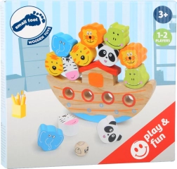 Descoperiți farmecul jocului de echilibru cu arca din lemn, care îi poate captiva atât pe copii, cât și pe adulți. Scopul este să așezați animăluțele colorate pe barcă astfel încât să nu se răstoarne. Acest joc dezvoltă motricitatea fină, coordonarea mână–ochi și îi învață pe copii răbdarea și gândirea strategică.