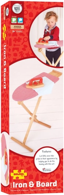 Copiii pot petrece ore întregi jucându-se cu această placă de călcat din lemn, robustă și realistă, și cu fierul de călcat.