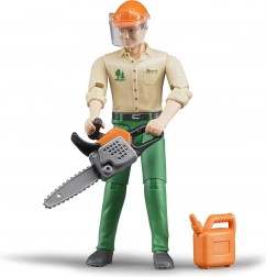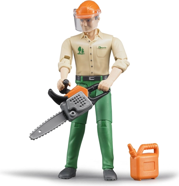 Îmbogățirea colecției dvs. BRUDER cu Bworld figură tăietor de lemne aduce un joc realist și aventuri în pădure. Figurină este complet mobilă și se potrivește perfect în cabinele camioanelor, tractoarelor și altor mașini BRUDER. Setul include echipamente esențiale precum o drujbă și o cască de protecție cu vizieră.