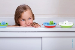 Trei bărcuțe colorate plutesc și pot fi folosite în cadă, piscină sau pe uscat. Forma simplă și culorile vii invită la joacă.