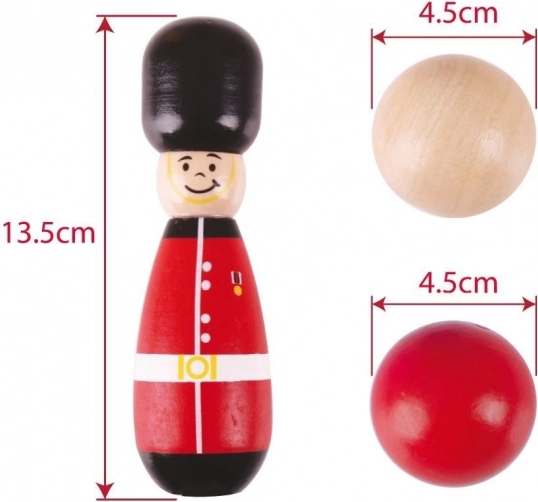 Bucură-te de un joc clasic distractiv cu popice care adoră să se răstoarne și să se redreseze. Șase popice din lemn și o minge de bowling din lemn sunt instrumente excelente pentru dezvoltarea dexterității și a coordonării. Setul include: