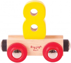 Acest vagon cu numărul 8 va îmbogăți orice cale ferată din lemn cu un element distractiv și didactic. Numărul detașabil se poate înlocui ușor cu litere sau alte cifre, astfel încât copiii își pot compune propriile nume, inscripții și numere. Datorită cuplelor magnetice, vagonul se conectează fără probleme la locomotivele și vagoanele sistemelor din lemn îndrăgite.