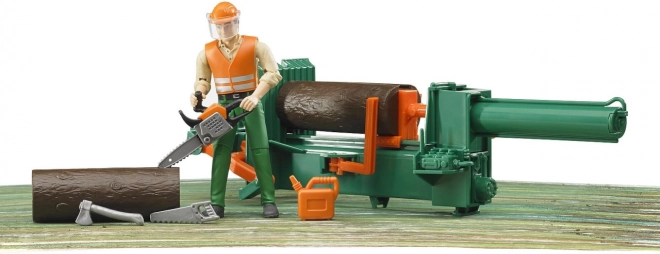 Pachetul include o figurină muncitor cu vestă și cască cu vizieră, despicător de lemne, 2 butuci și un set complet de unelte – secure, ferăstrău de mână, drujbă și canistră pentru benzină. Astfel, copiii își pot antrena motricitatea fină și imaginația într-un mod sigur și creativ.