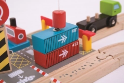 Descoperiți un terminal din lemn grozav cu o macara magnetică funcțională, care le aduce copiilor mai aproape lumea porturilor și a căilor ferate. Setul include un camion de marfă din lemn cu containere și o macara robustă pentru încărcare și descărcare ușoară. Întregul ansamblu este sigur, durabil și invită la joc deschis.