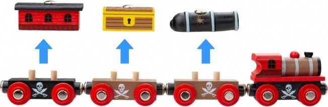 Tren pirat de la Bigjigs Rail este alegerea ideală pentru micii aventurieri. Acest set conține o locomotivă și trei vagoane detaliate cu cuplaje magnetice clasice. Compatibil cu toate sistemele feroviare din lemn.