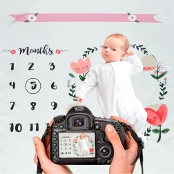 Pătura foto este proiectată pentru a surprinde cu ușurință cele mai importante momente în creșterea copilului dumneavoastră. Cu numere de la 1 la 12 și inscripția 'Luni', oferă un fundal ideal pentru fotografiile voastre.