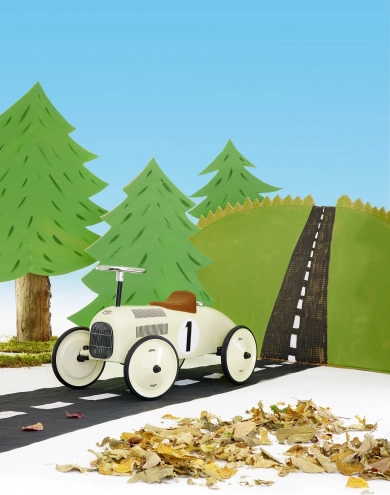 Datorită roților cauciucate, deplasarea este silențioasă chiar și pe suprafețe dure, astfel încât premergătorul este potrivit atât pentru interior, cât și pentru trotuar. Designul retro se evidențiază în orice cameră de copii și stimulează imaginația și bucuria mișcării.